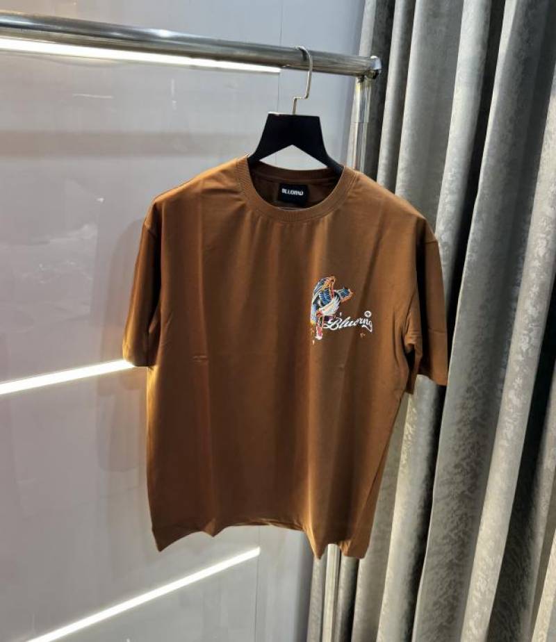 Bluorang Brown Embossed Print Imported Oversized T-Shirt