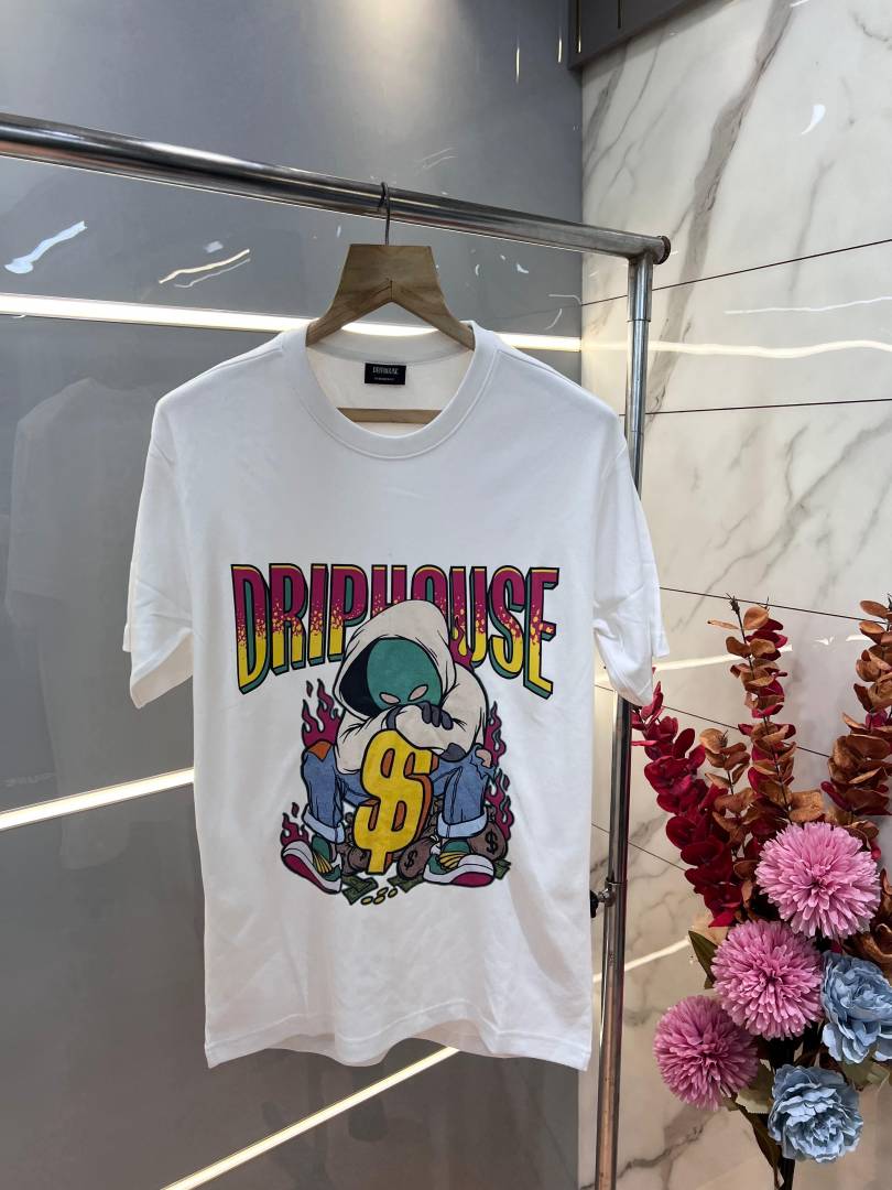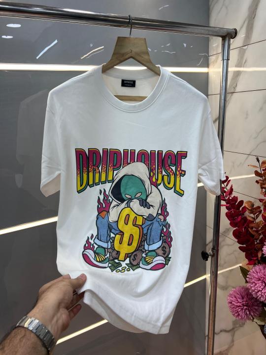 Drip House White Imported Premium Round Neck Printed Tshirt 3099