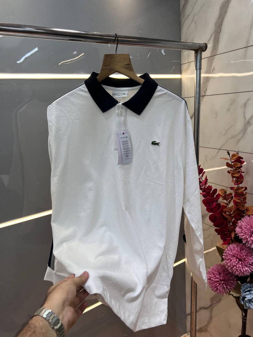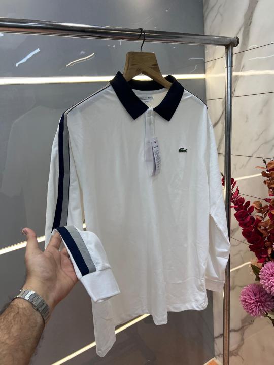 Lacost e White Premium Cotton Lycra Pique fabric Polo Tshirt with Shoulder Strip and Embroidered Logo 3121